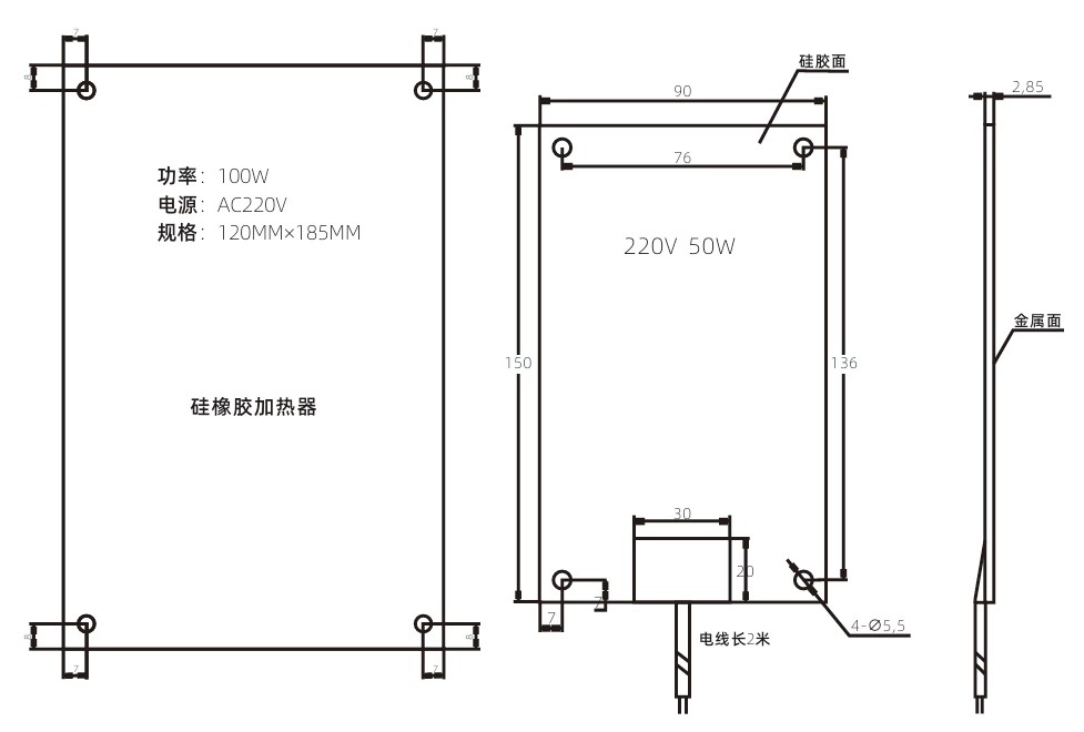 50W 150 mm 90 mm 2,8 mm 136 76
